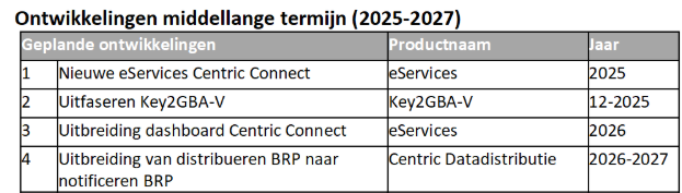 - de ondersteuning op Key2GBA-V gaan afbouwen en vervangen door Centric BRP-V;