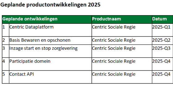 De expertgroep van Centric Sociale Regie komt iedere drie maanden bij elkaar in Gouda. Op deze dag staan nieuwe ontwikkelingen en klantwensen centraal. Met de expertise van beheerders, key-users, kwaliteitsmedewerkers en vakspecifieke specialisten binnen de expertgroep worden ontwikkelingen vanaf concept besproken. Dit zorgt voor hoge