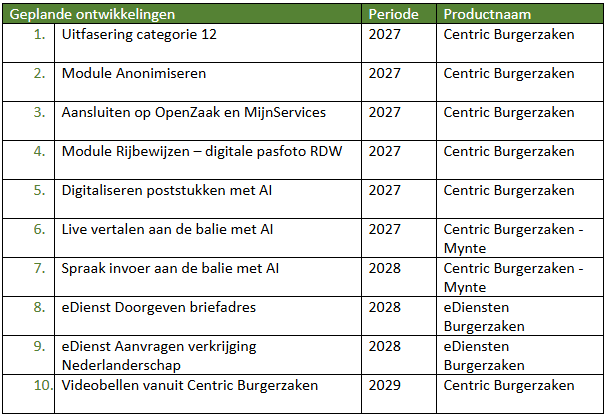 Voor de doorontwikkeling van Centric Burgerzaken sluiten we aan bij wetswijzigingen en marktontwikkelingen, zoals Common Ground, en realiseren we de wensen van gebruikers. Ons uitgangspunt daarbij is altijd: gebruiksgemak voor medewerkers en een efficiënte bedrijfsvoering voor gemeenten.