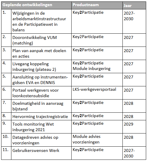 Met VUM sluiten we aan op de behoefte om werkzoekenden en vacatures beter vindbaar te maken. Beproevingen vinden binnenkort plaats. Hierin werken we samen met Matchcare, specialist in matching op vacatures. Met hun vernieuwde applicatie optimaliseren we gegevensdeling. We houden daarbij ook de relatie met het recent uitgerolde CompetentNL in de gaten. Voor de gegevensdeling tussen DUO, COA en gemeenten (realisatie plateau 2) vinden begin 2026 de eerste beproevingen plaats. Het resultaat gaat klantmanagers inburgering veel administratie en daarmee tijd besparen. Voor de EVA-instrumentengids hebben we meer tijd nodig, maar ook daar maken we plannen voor. Daarnaast houden we de uitvoering van de samenwerking tussen gemeenten en onderwijs voor de ‘Wet van school naar duurzaam werk’ goed in de gaten.